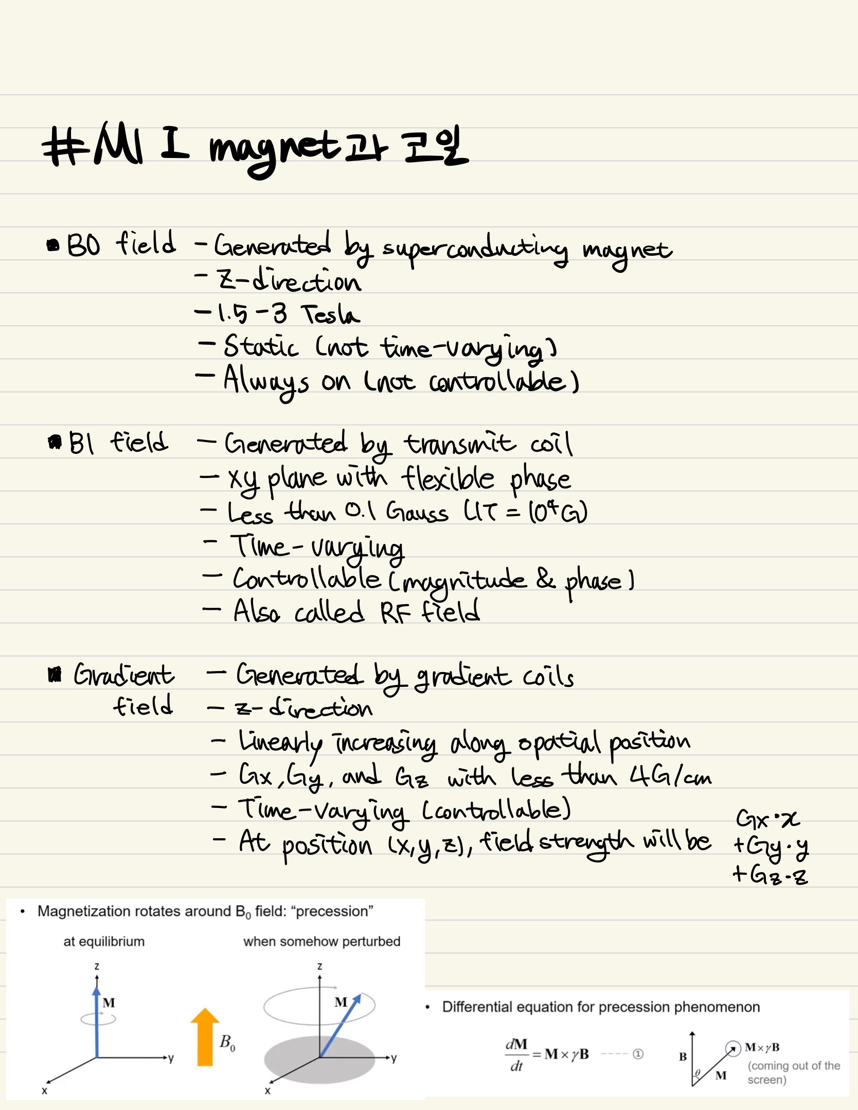 MRI 이론 (1) - Gradient, Bloch equation (신태훈 교수님 강의 영상 정리입니다) 출처: 자기공명영상(MRI)-신태훈교수님 - YouTube 자기공명영상(MRI)-신태훈교수님 www.youtube.com MRI 2024.07.08